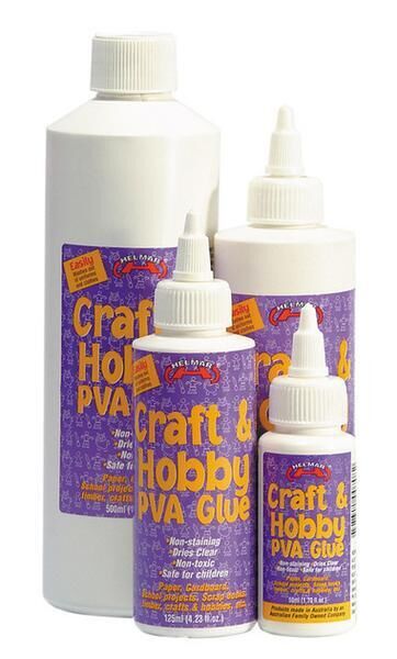 Easy to use and quick drying. Ideal for use with paper, cardboard, most timbers, MDF, balsa wood and fabrics.