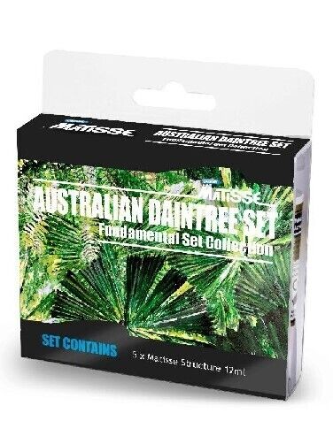 This set offers a succulent selection of colours inspired by the iconic Daintree rainforests of Northern Queensland Australia. Set Contains 12ml tubes of: Southern Ocean Blue, Aus. Blue Gum, Aus. Sap Green, Aus. Olive Green, and Aus. Yellow Green.